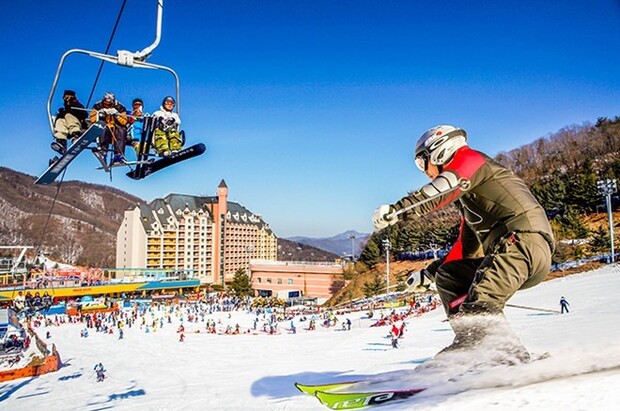 - Trải nghiệm trượt tuyết tại khu Elysian Gangchon nổi tiếng.